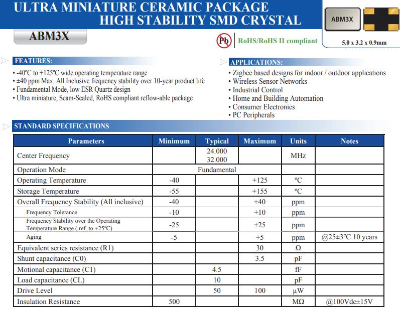 Abracon晶振,ABM3X晶振,5032四腳晶振