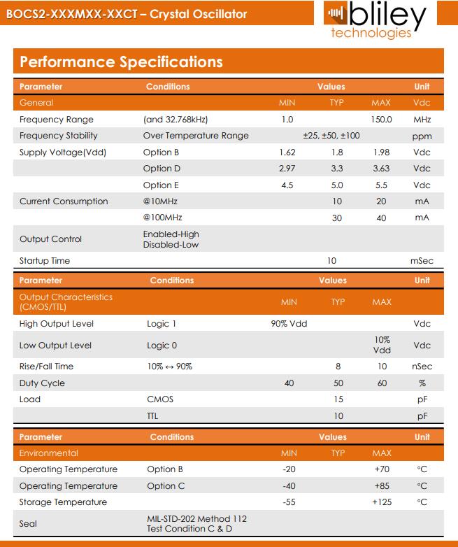 進口Bliley晶振,BOCS2系列晶振,2520小體積晶振