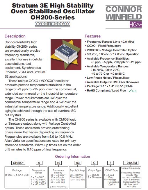 康納溫菲爾德晶振,OH200晶振,OH200-51003CF-010.0M晶振