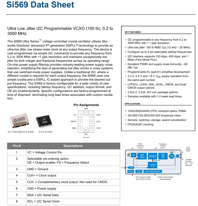 | 531BC125M000DG | Skyworks | Si531 | XO | 125 MHz | LVDS | 3.3V | ±7ppm |