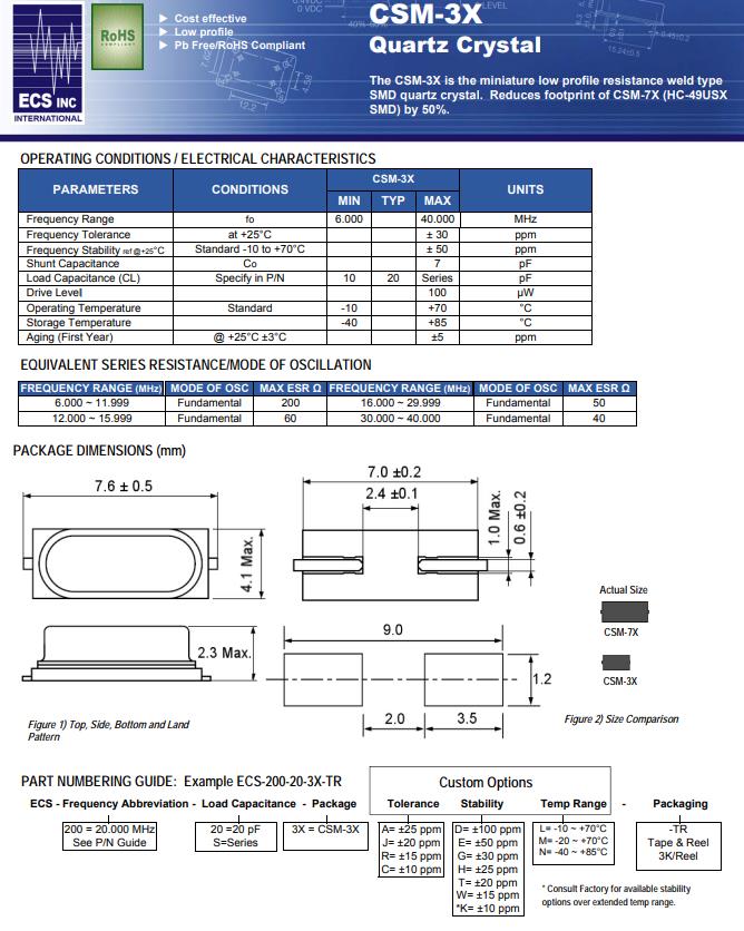 | ECS-200-20-3X-EN-TR | CSM-3X | MHz Crystal | 20MHz | ±50ppm | ±30ppm | 20pF |