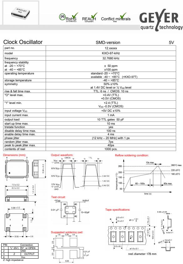 格耶德國晶振,KXO-97-kHz進口晶振,石英晶體振蕩器
