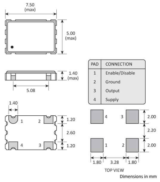 Golledge品牌-GXO-U108L/AI 50.0MHz-6G基站晶振尺寸圖