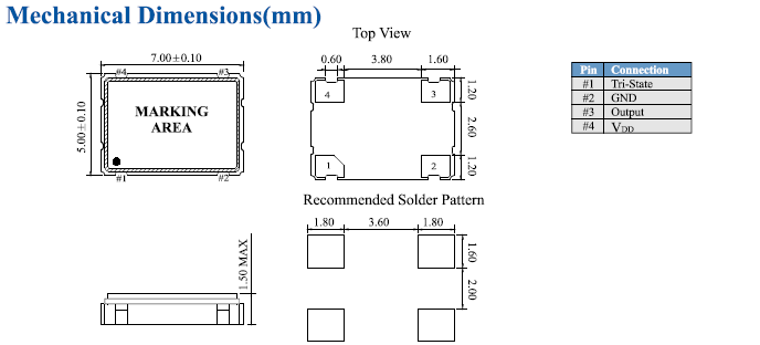從最初超大體積到現在的7050mm,6035mm,5032mm,3225mm,2520mm體積,有著翻天覆地的改變,體積的變小也試產品帶來了更高的穩定性能,接縫密封石英晶體振蕩器,精度高,覆蓋頻率范圍寬的特點,SMD高速自動安裝和高溫回流焊設計,Optionable待機輸出三態輸出功能,電源電壓范圍:1.8V~5 V,高穩定性,低抖動,低功耗,主要應用領域:無線通訊,高端智能手機,平板筆記本WLAN,藍牙,數碼相機,DSL和其他IT產品的晶振應用,三態功能,PC和LCDM等高端數碼領域,符合RoHS/無鉛.