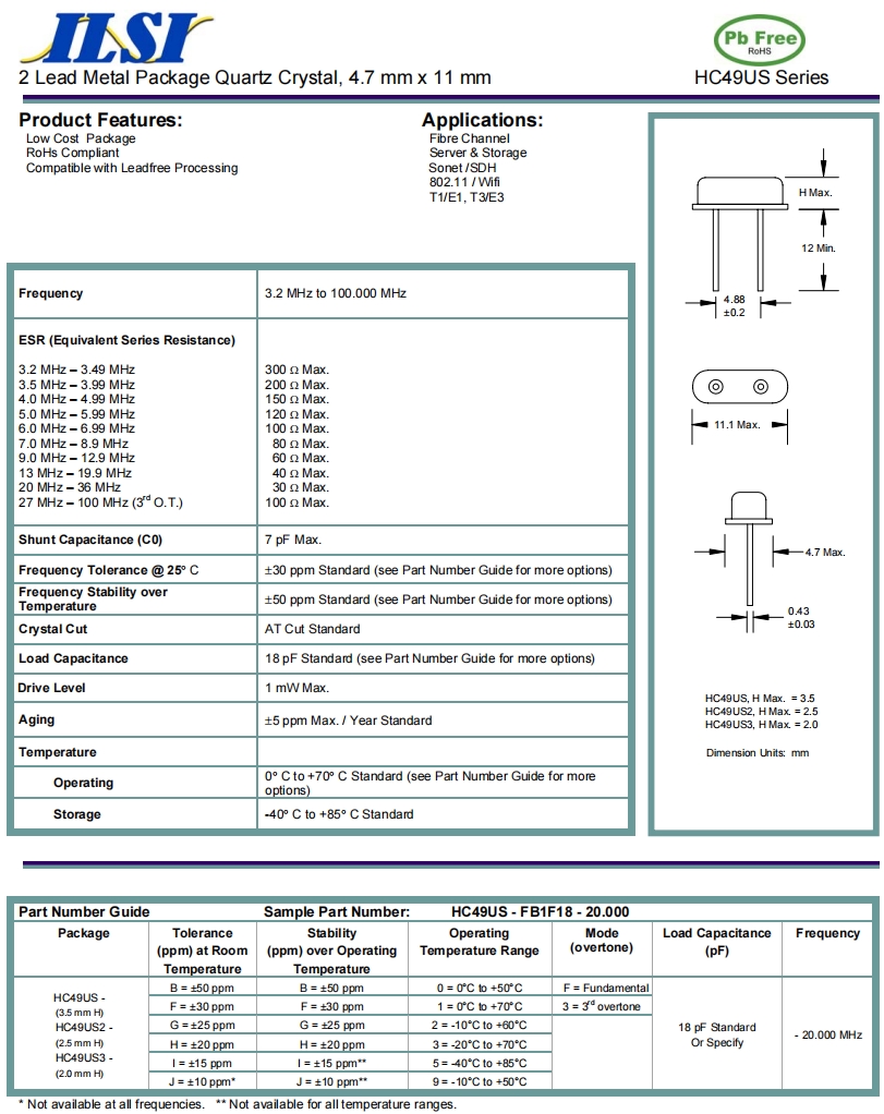 | ILCX07A-FB1F12- 18.432 MHz | ILSI | ILCX07A | 0°C ~ 70°C | 18.432 MHz | ±30ppm | 12 pF |