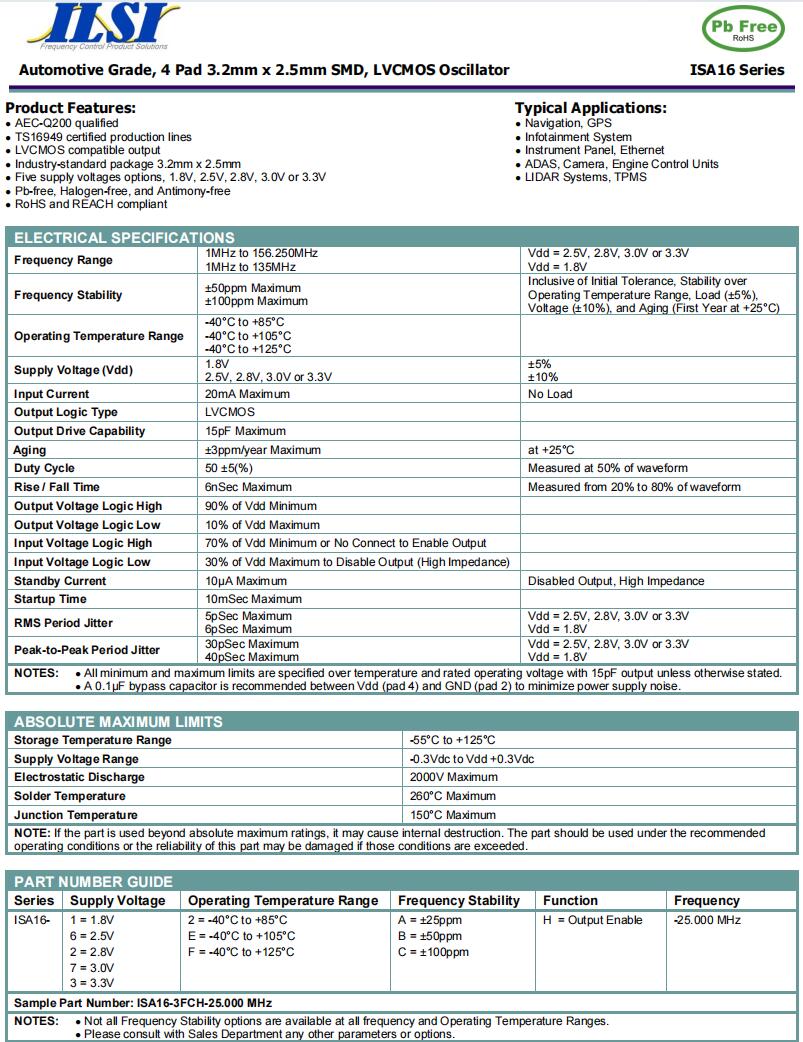 | ILCX13-JI5F10- 25.000 MHz | ILSI | ILCX13 | -40°C ~ 85°C | 25 MHz | ±10ppm | 10 pF |