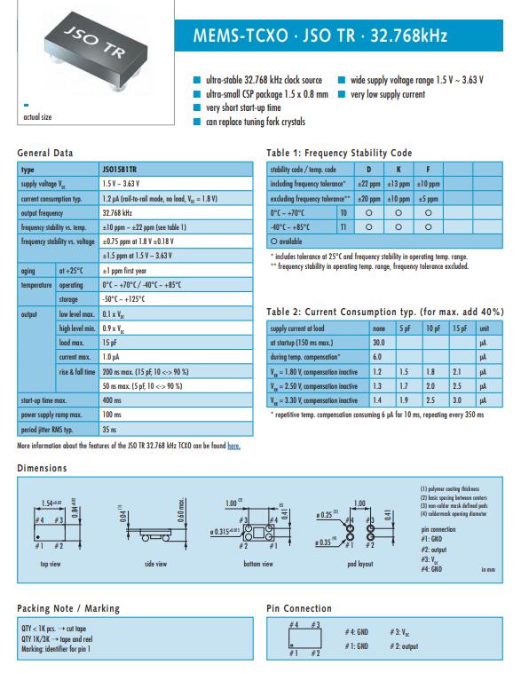 Jauch晶振,JSO15B1TR晶振,TCXO晶振