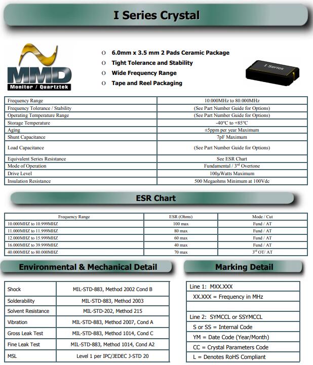 MMDCOMP石英晶振,I Series Crystal,6035二腳晶振