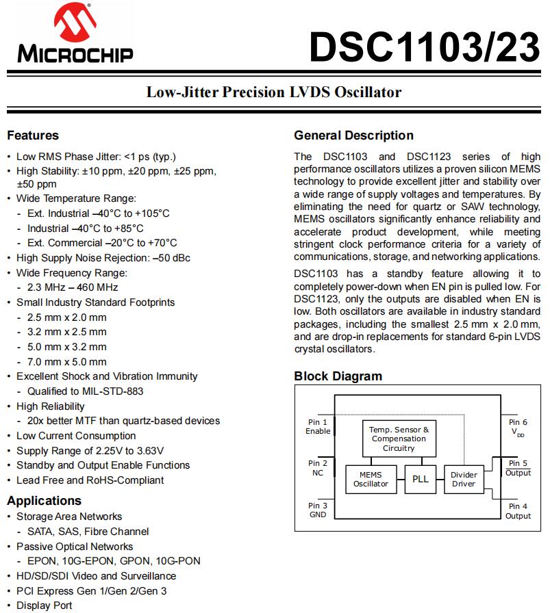 | DSC1103AE1-125.0000 | Microchip Technology | DSC1103 | 125MHz | 2.25 V ~ 3.6 V | 0.276" L x 0.197" W (7.00mm x 5.00mm) |