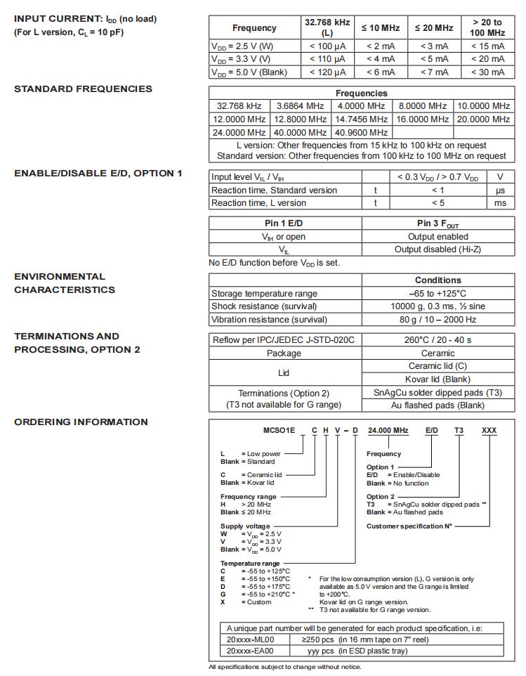 MCSO1ECHV-C-40.000MHz-E/D-T3|耐高溫晶振|6G基站晶振規格表