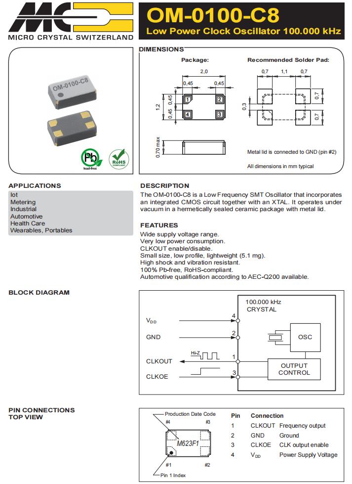 | CC7V-T1A-100.000kHz-9pF-100PPM-TA-QC | Micro 晶振 | 晶體 100.000 kHz 9.0 pF +/-100 PPM -40/+85C | Crystals |