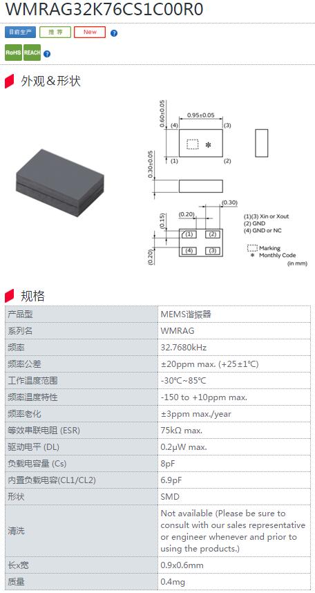 進口村田晶振,WMRAG系列晶振,WMRAG32K76CS1C00R0晶振