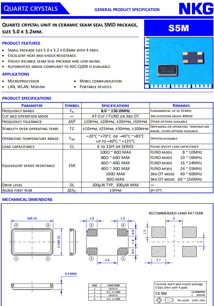 香港NKG晶體|S5M12.288F10M23-EXT|6G無線局域網晶振規格表