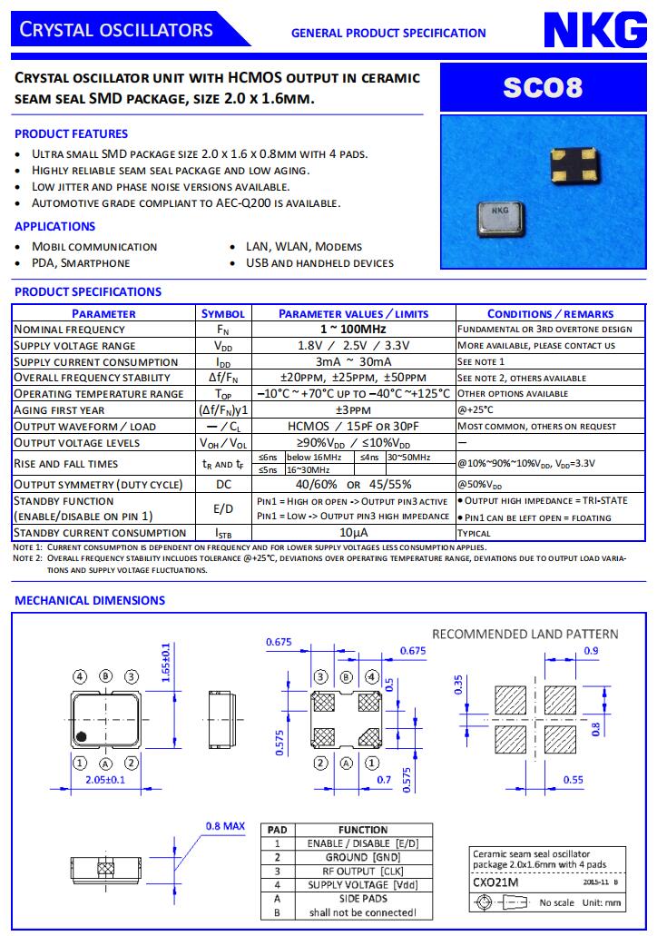 NKG晶振|SCO8-6-B-27.0000-WTS-EXT|2016超小振蕩器規格表
