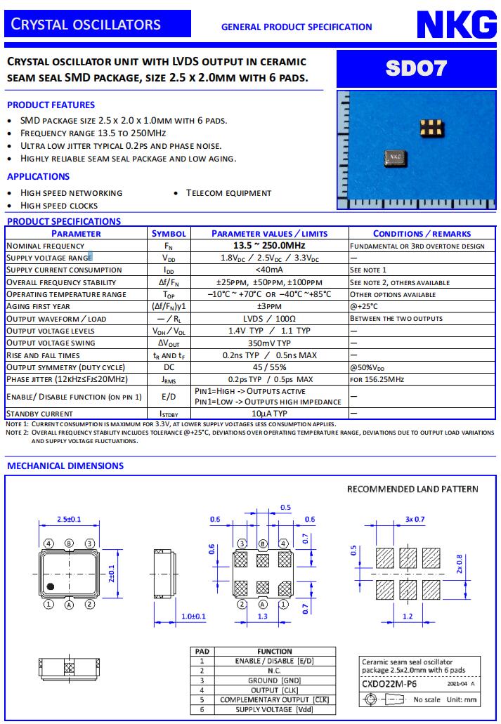 NKG晶振|SDO7-6-D-120.00-WNS-EXT|超小型差分晶振規格表