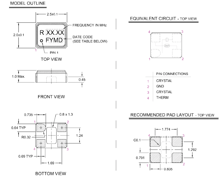 瑞康晶振,RXT2520AT晶振,2520小體積晶振