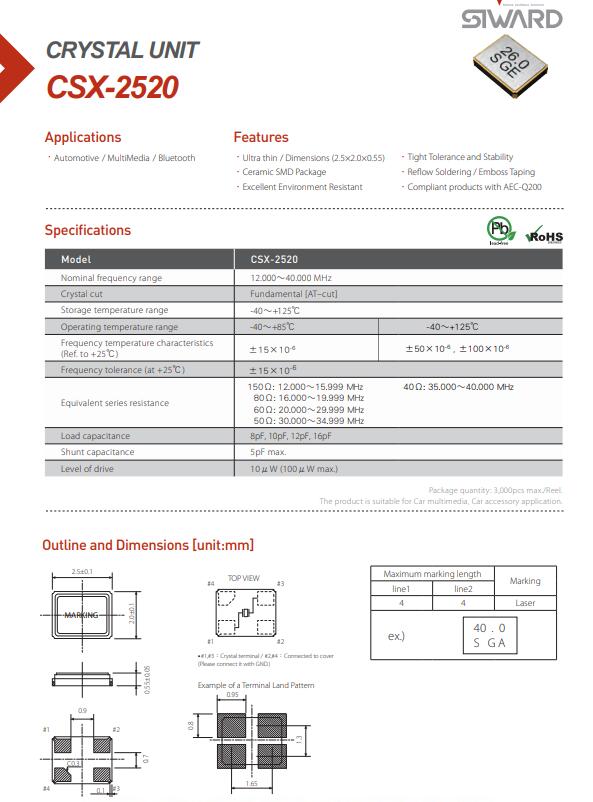 臺灣希華晶振,CSX-2520晶振,2520石英晶振