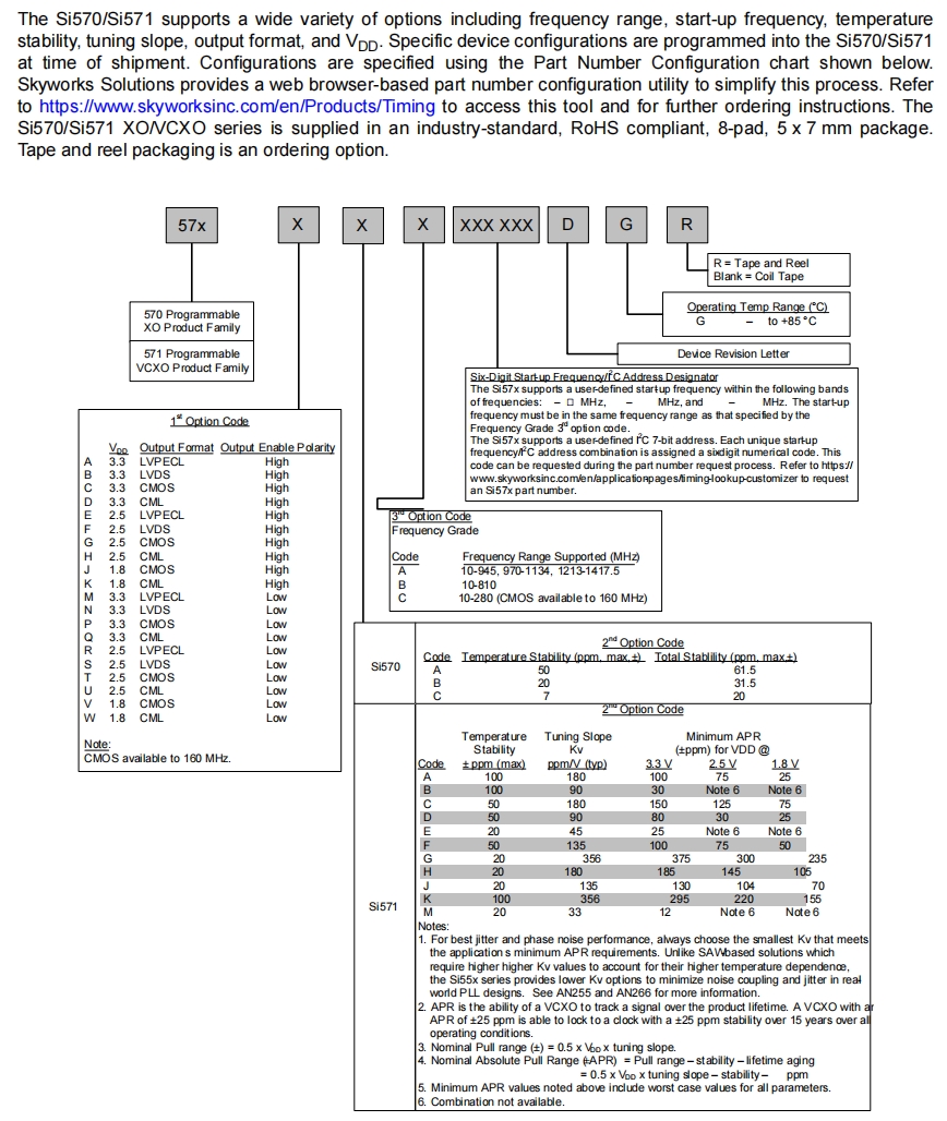 | 571AGA000107DG | Skyworks Solutions Inc. | Si571 | 10 MHz | LVPECL | 2.97V ~ 3.63V | ±20ppm |