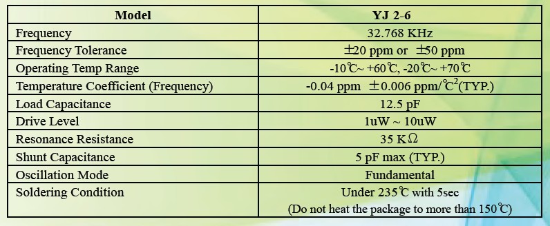 千赫頻率元件,應用于時鐘模塊,智能手機,全球定位系統各種小巧的便攜式消費電子數碼時間產品,環保性能符合ROHS無鉛標準.