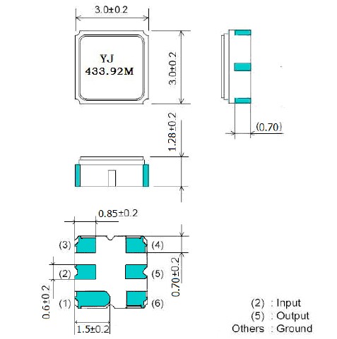 3030聲表濾波器R433.92M尺寸圖