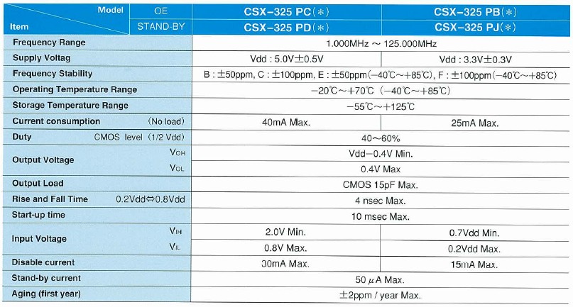 西鐵城晶振CSX325P,小型,薄型表面貼片型晶體諧振器,特別適用于有小型化要求的市場領域.