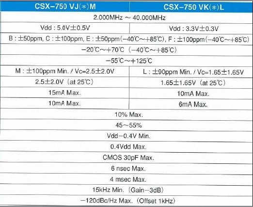 石英振蕩器CSX750V規格