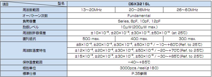 DSX321SL晶振規格