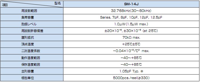 KDS晶振SM-14J|超小型、薄型、質地輕的表面貼片音叉型晶體諧振器、具備優良的耐熱性、耐環境特性、在辦公自動化、能發揮比陶瓷外殼更好的耐沖擊性。