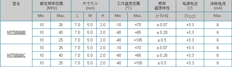 進口NT7050BC晶體,日本電波貼片晶振,十腳溫補晶體振蕩器產品本身具有溫度電壓控制功能,世界上最薄的晶振封裝,頻率:26兆赫,33.6兆赫,38.4兆赫,40兆赫,因產品性能穩定,精度高等優勢,被廣泛應用到一些比較高端的數碼通訊產品領域,GPS全球定位系統,智能手機,WiMAX和蜂窩和無線通信等產品,符合RoHS/無鉛.