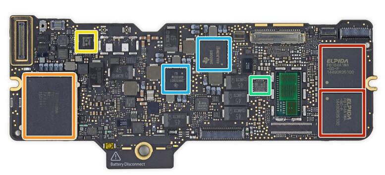 全新MacBook的厚度不到2009款MacBook的一半,最厚的地方只有13mm.2009款MacBook上,有MagSafe、以太網、Mini DisplayPort、兩個USB、音頻接口和安全鎖孔.小心翼翼的將MacBook主板從鋁金屬外殼上拆下.蘋果提到Retina MacBook的主要要比11寸MacBook Air的小 67%.蘋果在MacBook中使用了英特爾Core M處理器,這款處理器可以減小尺寸以及散熱.