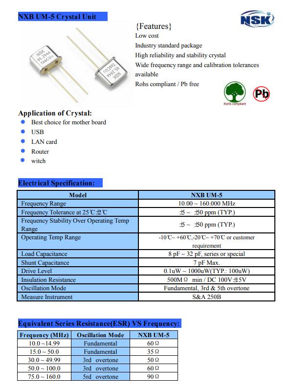 NSK晶振,NXBUM-5晶振,8032二腳插件晶振