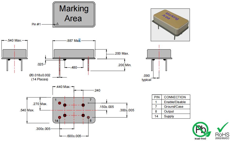 Anderson進口晶振|AE431長方形鐘振|16.384MHz尺寸圖