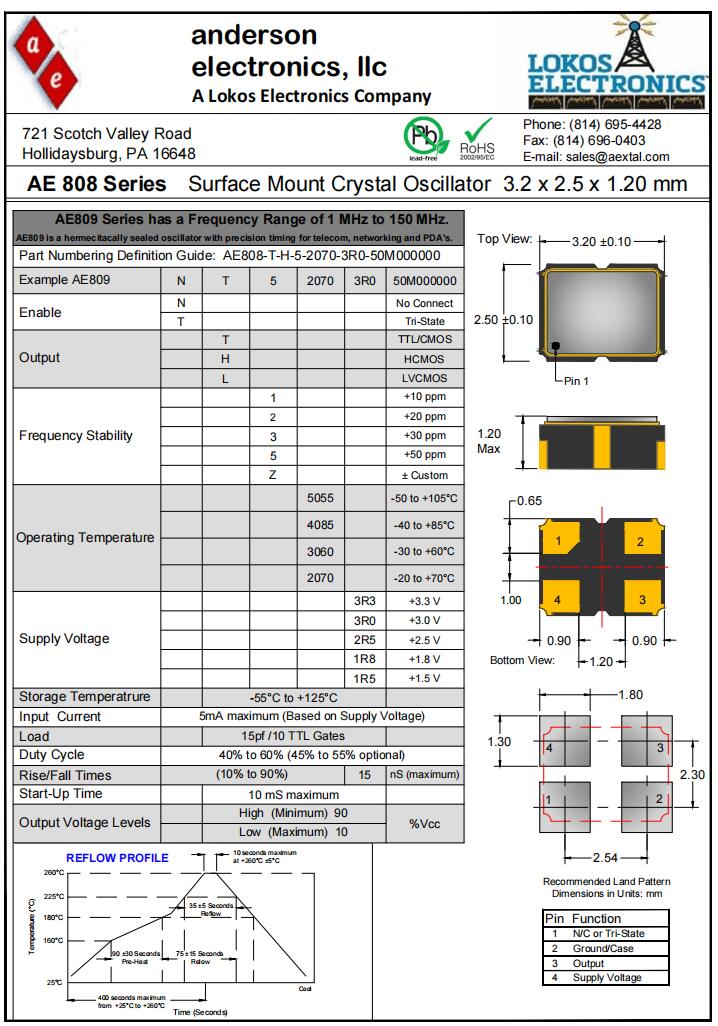 Anderson晶振|AE808-N-T-3-4085-3R0-50M000000|小體積有源晶振規格表