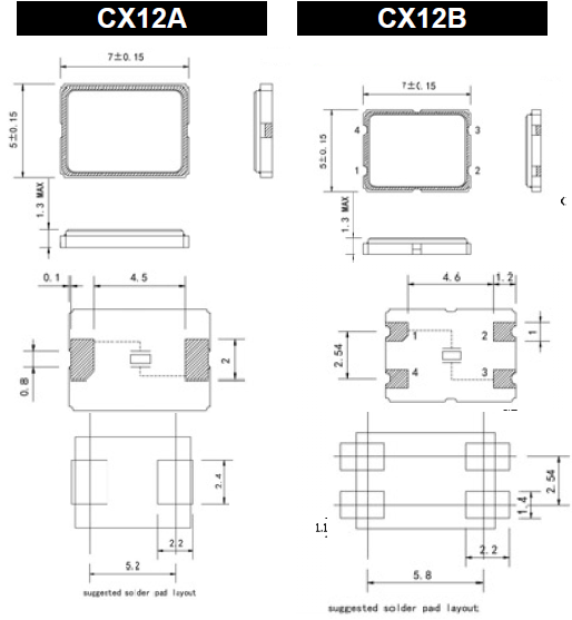 美國卡迪納爾晶振,CX12A/CX12B無源貼片晶振,CX12AZ-A2-B3C360-9.83D20-3晶振