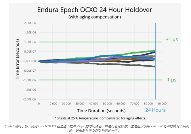 在大多數軍事任務配置文件中,找到一個在 24 小時內提供 1 μs 時間誤差的低 SWaP 振蕩器并非易事。傳統上,嚴格的要求要求需要定制的振動補償 OCXO,該 OCXO 的交貨時間可能很長且價格昂貴。另一種選擇是小型化原子鐘,它的交貨時間也很長,甚至更昂貴,在振動下性能不佳,而且又大又重。然而,今天,A-PNT 系統有了一種新的卓越保持替代方案:Endura Epoch 平臺™ OCXO。新型 MEMS Endura Epoch OCXO 提供 A-PNT 彈性和低 SWaP。