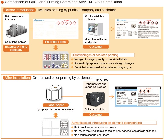 通過與生產三種類型的條形碼標簽打印軟件的公司合作,我們在TM-C7500本機驅動程序中集成了三種類型的軟件,以實現按需彩色標簽打印的環境,而無需客戶更換系統.