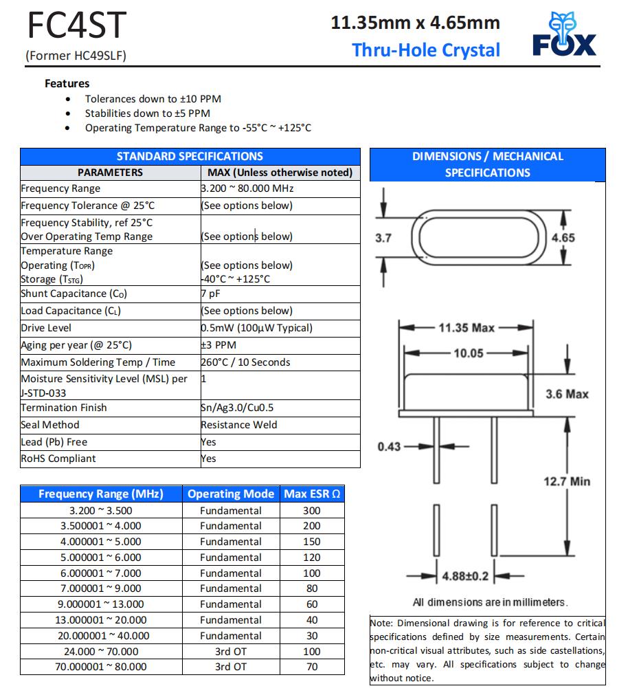 | FC4STCBMF18.432 | Fox 晶振 | C4ST | 18.432 MHz | ±50ppm | ±30ppm | 20pF | -20°C ~ 70°C |