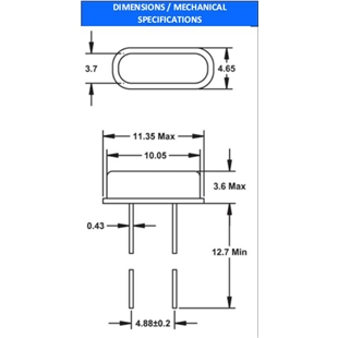 FOX晶振|FC4STCBMF24.576插件晶振|6G模塊晶振尺寸圖