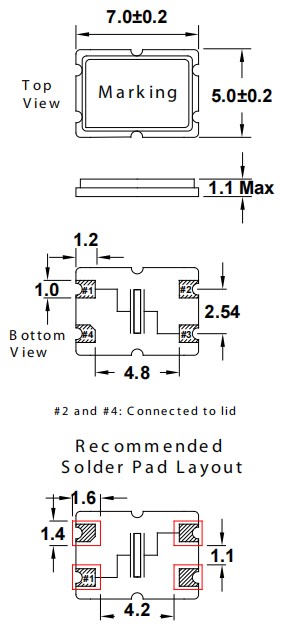 FOX晶振,FC7BACBMI20.0-T1,6G光纖通道晶振尺寸圖