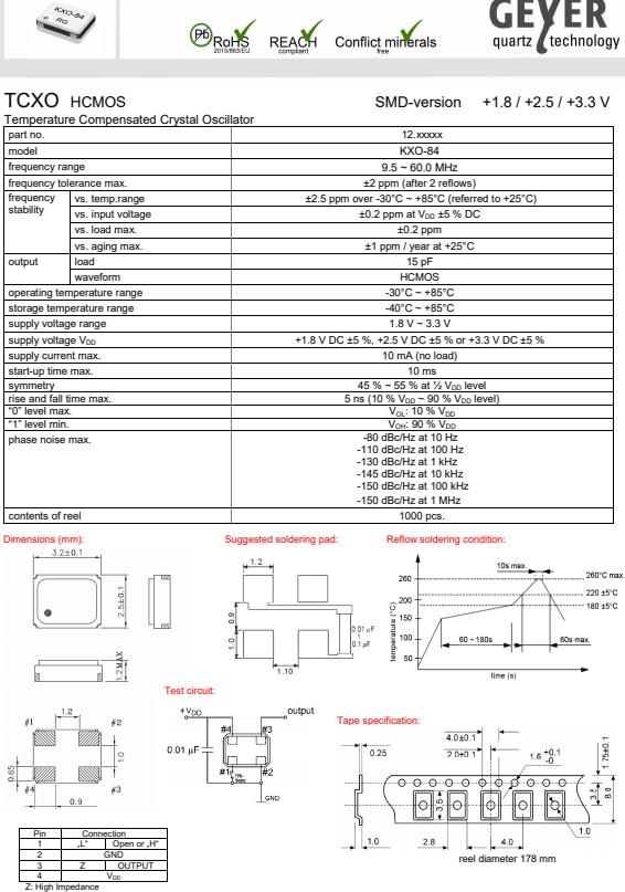 格耶進口晶振,KXO-84低抖動晶振,溫度補償晶體振蕩器