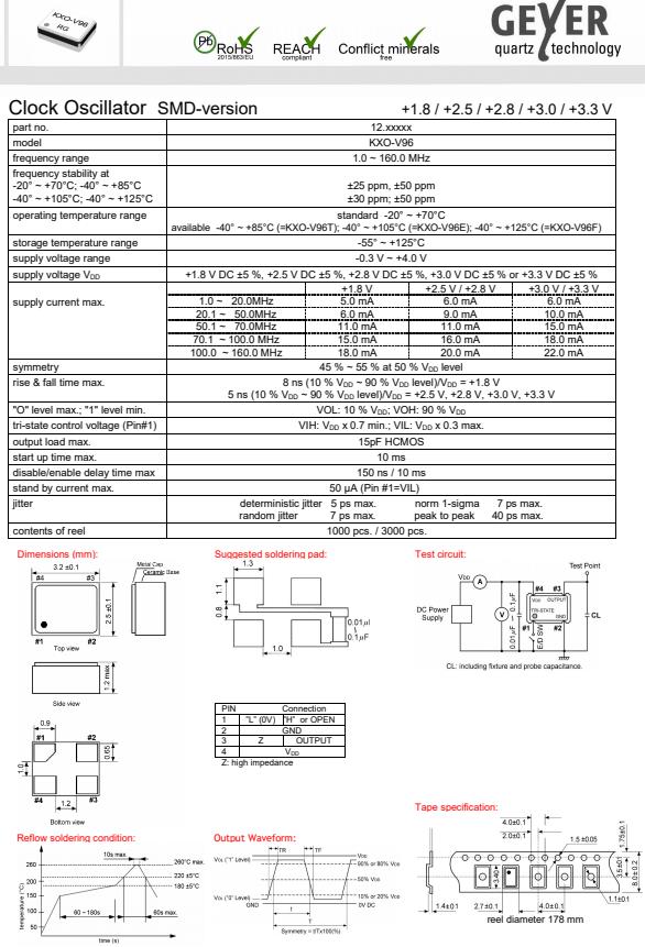 格耶德國晶振,KXO-V96貼片有源晶振,3225mm振蕩器
