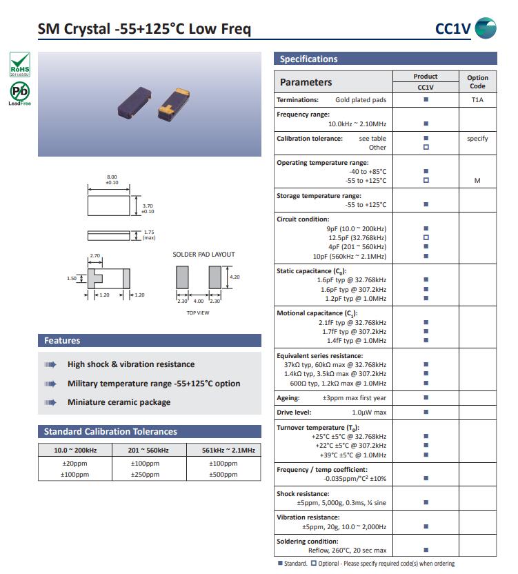 高利奇晶振,CC1V晶振,8038二腳晶振貼片晶振本身體積小,超薄型石英晶體諧振器,特別適用于有目前高速發展的高端電子數碼產品,因為晶振本身小型化需求的市場領域,小型?薄型是對應陶瓷諧振器(偏差大)和普通的石英晶體諧振器(偏差小)的中間領域的一種性價比較出色的產品.產品廣泛用于筆記本電腦,無線電話,衛星導航HDD, SSD, USB, Blu-ray等用途,符合無鉛焊接的高溫回流焊曲線特性