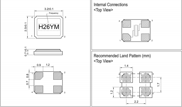 臺灣HELE晶振,X3S020000BK1H-U,6G光纖通道晶振尺寸圖