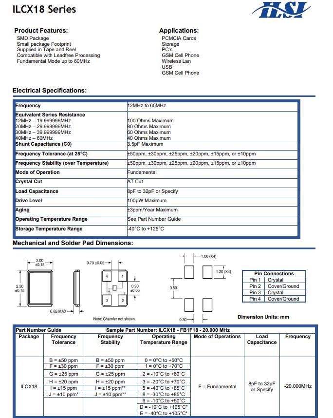 | ILCX13-HF5F18- 48.000 MHz | ILSI | ILCX13 | -40°C ~ 85°C | 48 MHz | ±20ppm | 18 pF |