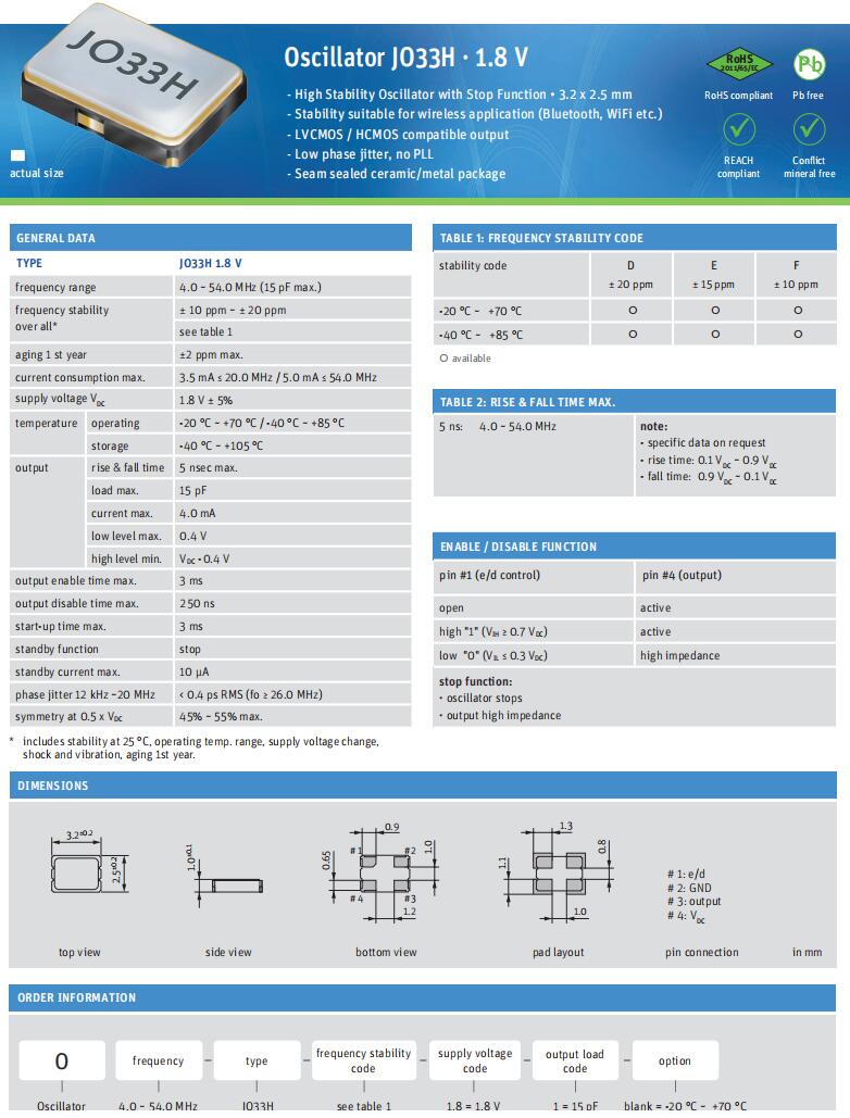 Jauch品牌,O 12.288-JO33H-F-1.8-1-LF,6G無線網絡晶振規格表
