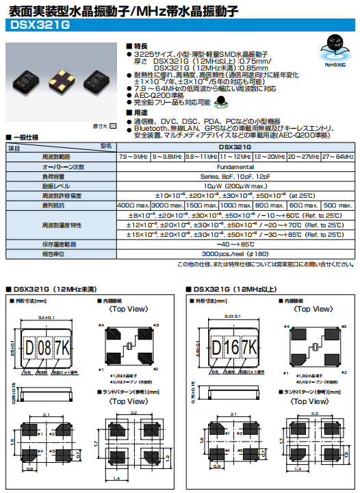 | KDS晶振 | 7AD01200A1R | DSX321G | 3225 | 12.000MHZ | |||||