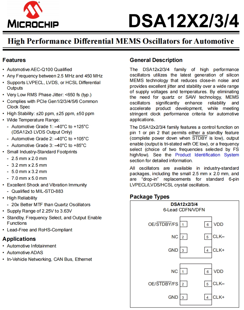 | DSC1124DE1-125.0000T | Microchip Technology | DSC1124 | 125MHz | 2.25 V ~ 3.6 V | 0.098" L x 0.079" W (2.50mm x 2.00mm) |
