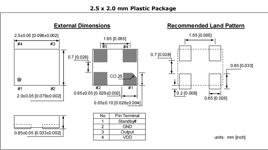| DSC1001DI1-004.0000T | Microchip Technology | DSC1001 | 4MHz | 1.8 V ~ 3.3 V | 0.098" L x 0.079" W (2.50mm x 2.00mm) |