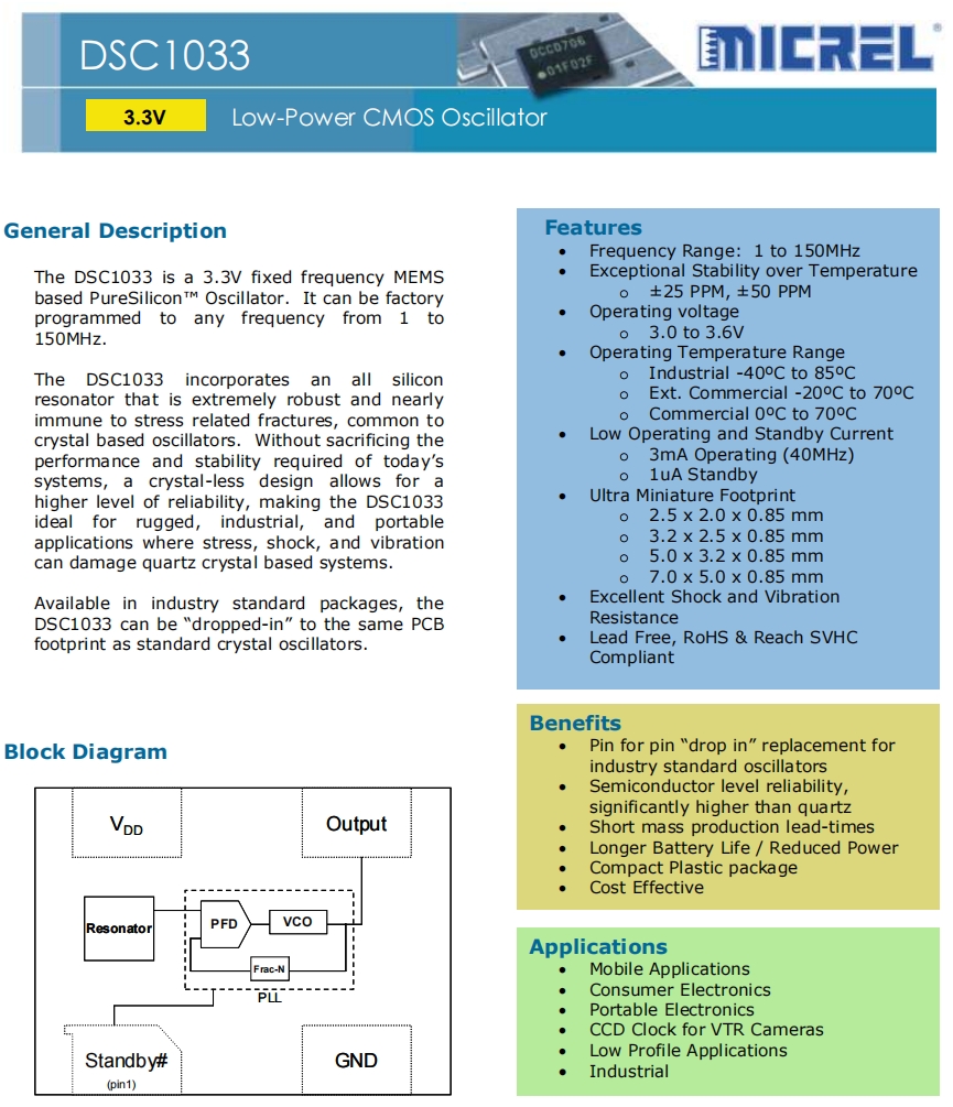 | DSC1001CI1-033.3330T | Microchip Technology | DSC1001 | 33.333MHz | 1.8 V ~ 3.3 V | 0.126" L x 0.098" W (3.20mm x 2.50mm) |
