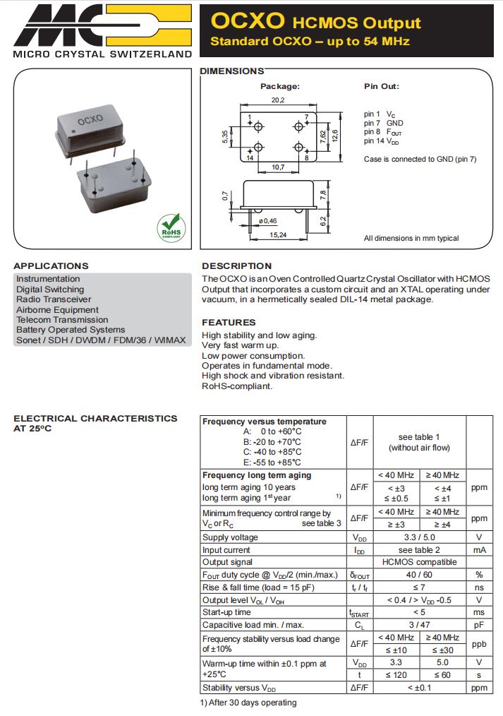 OCXOW-CV3-16.000MHz-D2|OCXO晶體振蕩器|6G基站晶振,瑞士微晶晶振,OCXO晶體振蕩器,OCXOW-CV3-16.000MHz-D2晶振,有源晶振,頻率16MHz,電壓3.3V,頻率穩定性500ppb,工作溫度-40~85°C,高可靠性晶振,低功耗晶振,6G基站晶振,數字交換晶振,無線電收發信機晶振,機載設備晶振.